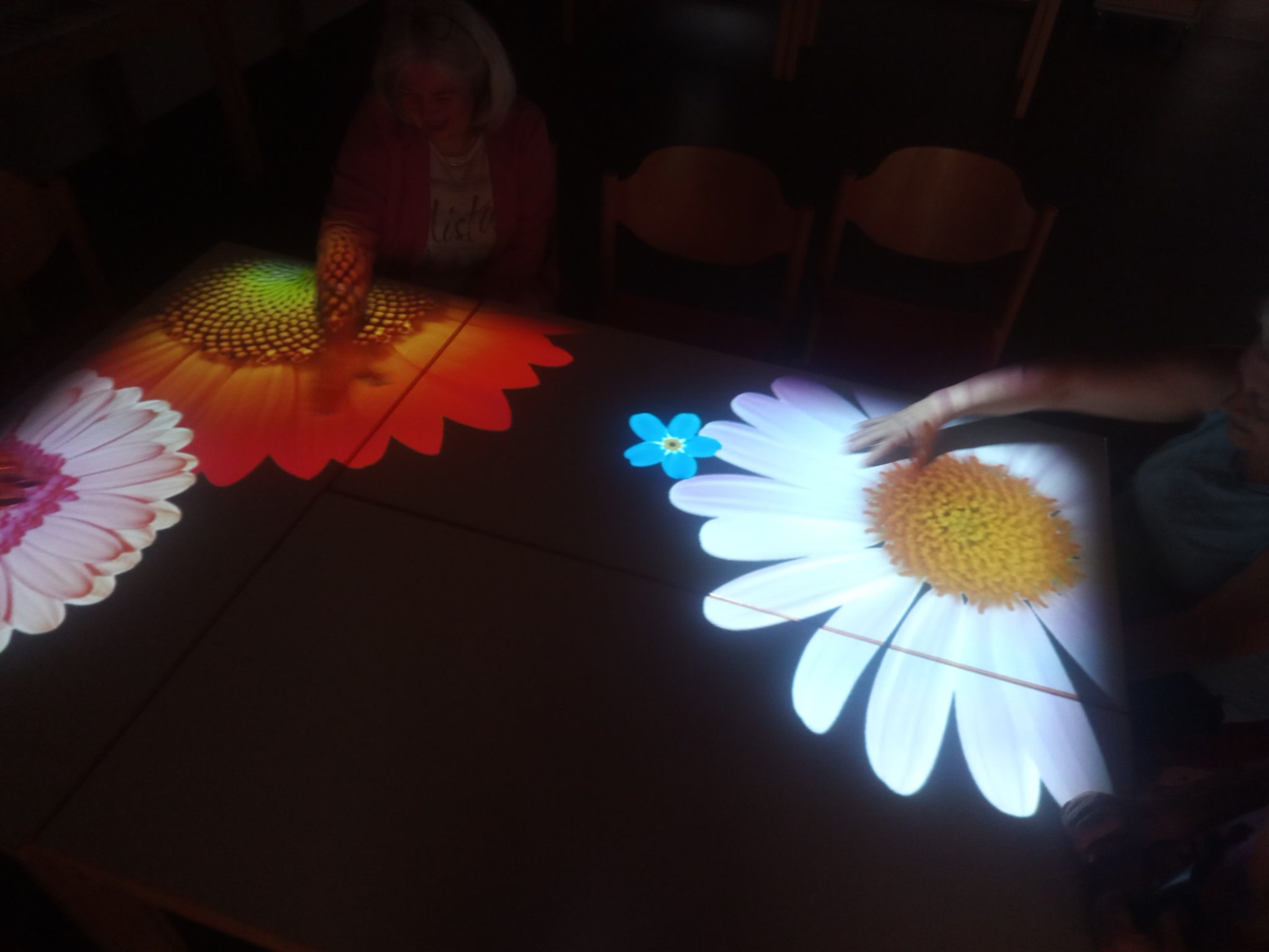 Ein weiterer Impuls wurde am 05. September 2022 gesetzt, indem die Projektgruppe zu einem „Informationsmarkt“ in das Ev. Gemeindehaus der Erlöserkirche Dinslaken eingeladen hat. Die Besucher:innen hatten die Möglichkeit, sich durch die fachliche Breite der einzelnen Akteur:innen der Projektgruppe über niedrigschwellige und kostenfreie Beratungs- und Entlastungsangebote zu informieren. So können Perspektiven für die Verbesserung und Stabilisierung der pflegerischen Situation zu Hause entwickelt werden. Im Rahmen dieses „Informationsmarktes“ konnten die Gäste „Demenz-Parcours“ nutzen, die die Gefühls- und Erlebenswelt von Menschen mit Demenz verdeutlichen. Bei näherem Interesse können die Parcours bei dem Regionalbüro Alter, Pflege und Demenz Niederrhein ausgeliehen werden. Eine Tovertafel sowie ein jeweils halbstündiger Gedächtnisspaziergang zeigten beispielhafte Beschäftigungsangebote auf.