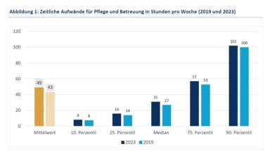 Menschen, die ihre Familienangehörigen pflegen, wenden mehr Zeit und eigenes Geld dafür auf. Das ist das Ergebnis einer repräsentativen Forsa-Umfrage im Auftrag des Wissenschaftlichen Instituts der AOK (Wido). Während die Befragten 2019 angaben, 43 Wochenstunden für die pflegende Tätigkeiten wie Ernährung, Körperpflege und Medikamentengabe zu benötigen, lag diese Zeit in der aktuellen Studie von 2023 bei 49 Stunden.