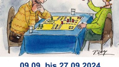 Die Bilder von Peter Gaymann werden im Begegnungszentrum in Dortmund Eving bis zum 27.09.24 ausgestellt.