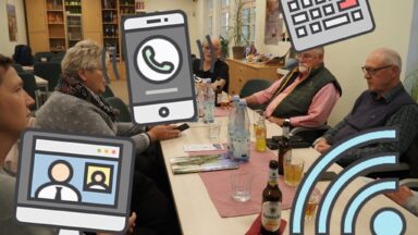 Der digitale Wandel betrifft alle Teile der Gesellschaft – selbstverständlich auch ältere Menschen. Bereits seit 2008 gibt es in der Begegnungsstätte Bergenthalpark ein Internetcafe. Die Anforderungen, Wünsche und der Unterstützungsbedarf haben sich jedoch stark verändert in den vergangenen Jahren. Während früher am Computer die ersten Erfahrungen im Internet gesammelt wurden, kommen heute Seniorinnen und Senioren mit Tablets und vor allem Smartphones in die Begegnungsstätte in der Nöttenstraße 29c. Die Anschaffung der Geräte ist in der Regel nicht mehr das Problem, die Handhabung kann jedoch einige Probleme bereiten. Deshalb bietet ein Team von Digitallotsinnen und Digitallotsen um Leiterin Petra Duling jeden 1. Und 2. Mittwoch Unterstützung an. Regelmäßig treffen sie sich auch zum Austausch im Rahmen eines Stammtisches.