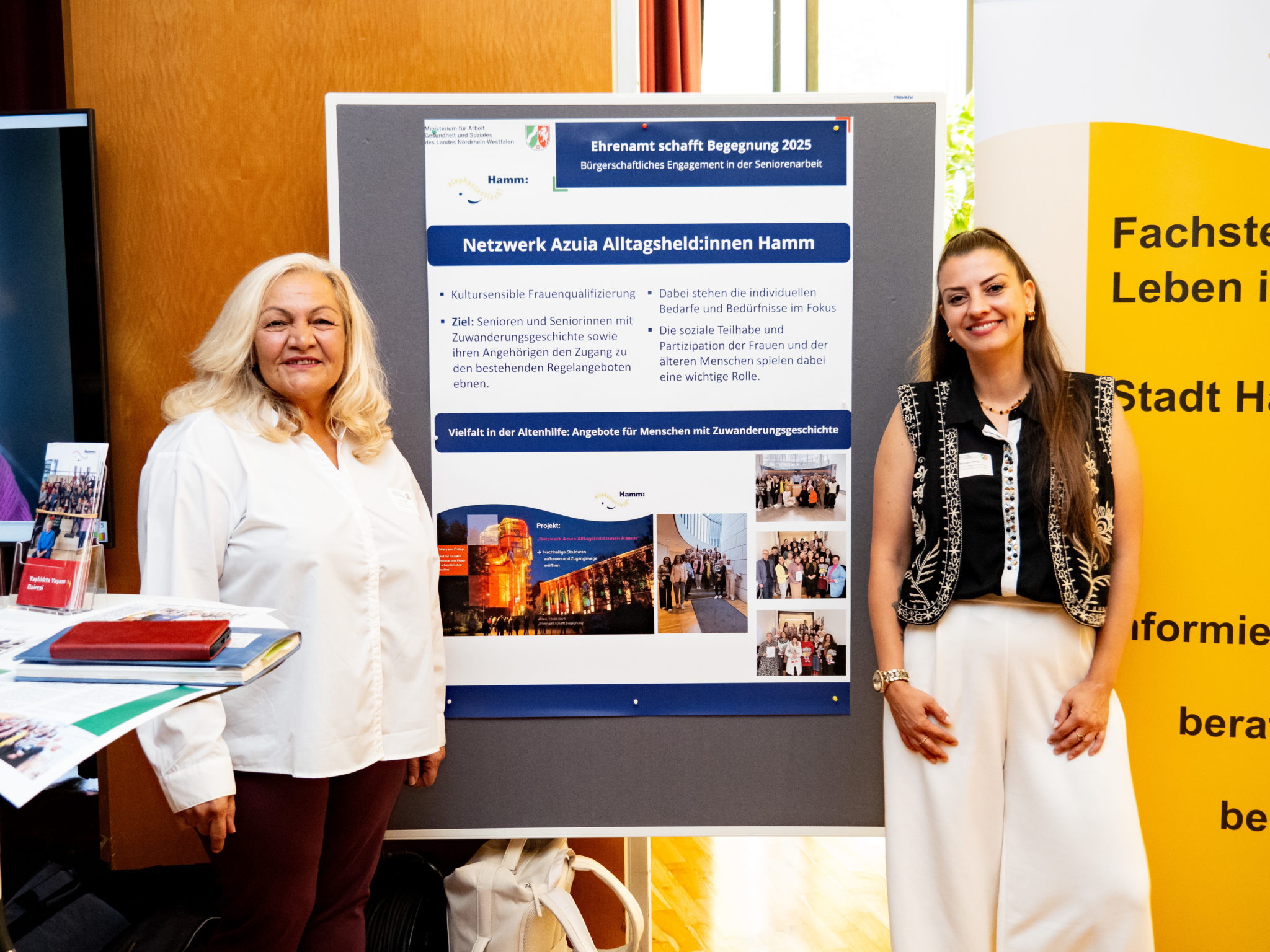 Ein weiterer Aspekt: Die sozialen Strukturen hätten sich verändert, gerade für Menschen mit Migrationshintergrund sei der Zugang zum Ehrenamt nicht immer leicht. Laumann lobte deshalb ausdrücklich das Engagement von Frauen wie Merym Oztop und Ayner Ergül aus Hamm, die mit ihrem Projekt Brücken bauen. „Wir sind noch längst nicht bei einer integrierten Gesellschaft angekommen – aber diese Arbeit bereichert uns alle“, so der Minister.