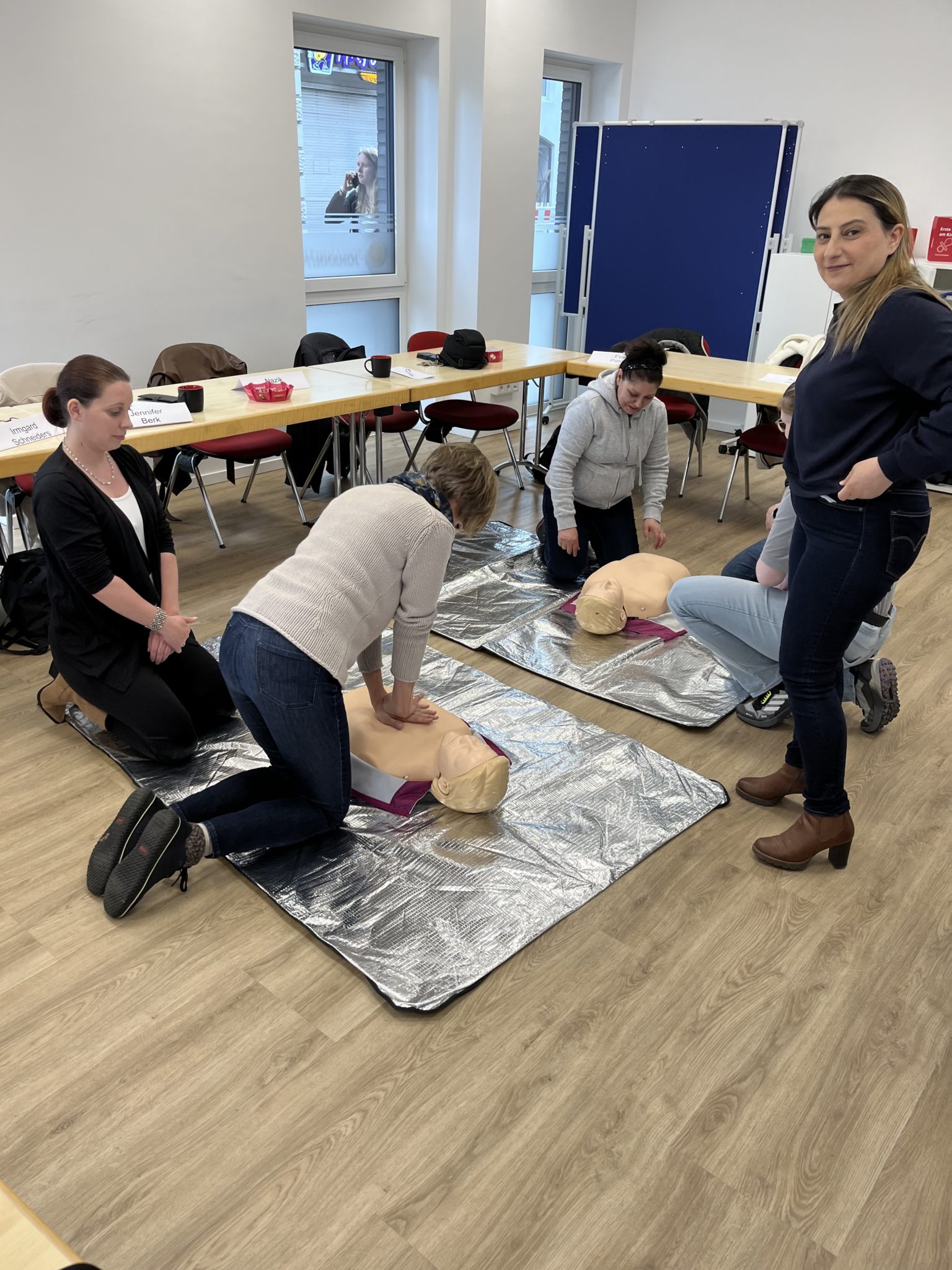 Dana Poggemann vom Kooperationspartner Johanniter-Unfall-Hilfe e.V. Regionalverband Niederrhein führte die Teilnehmenden durch den Nachmittag mit Informationen zu was immer richtig und in der Ersten Hilfe wichtig ist.