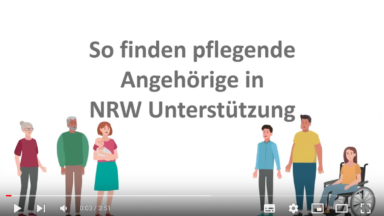 Das Erklärvideo zu den Unterstützungsangeboten für Pflegende Angehörige in Nordrhein-Westfalen zeigt die Vielfalt der vorhandenen Unterstützungsmöglichkeiten in NRW für verschiedene Gruppen von Pflegenden Angehörigen auf.