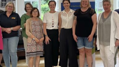 „Das Netzwerk bietet eine wichtige Plattform, um die drängenden Themen in den Bereichen Alter – Pflege – Demenz ganzheitlich anzugehen“, erklärte Ramona Jakobs-Reichert, Gleichstellungs-, Familien- und Seniorenbeauftragte der Stadt Fröndenberg, zusammen mit Theresas Rosenberg vom Regionalbüro Alter, Pflege und Demenz in Dortmund.