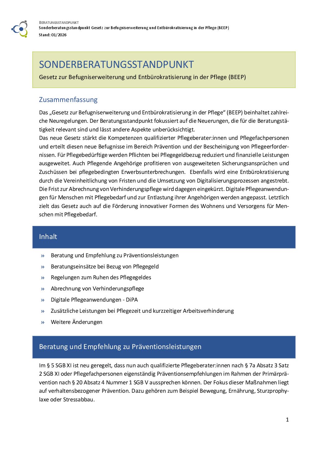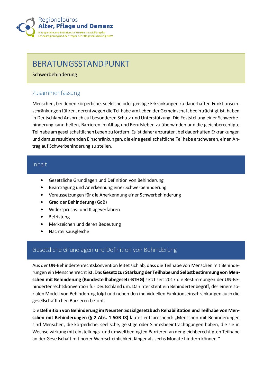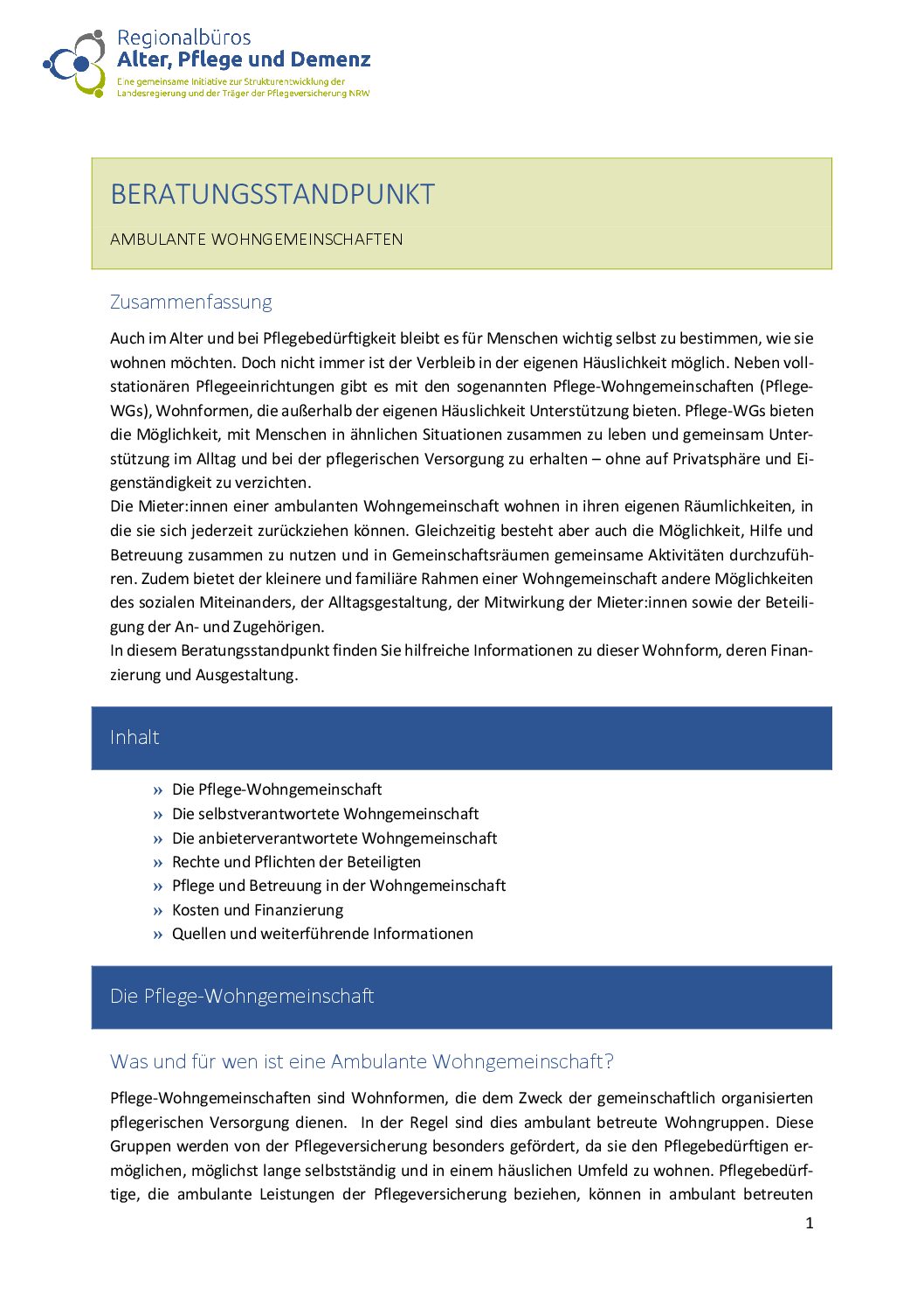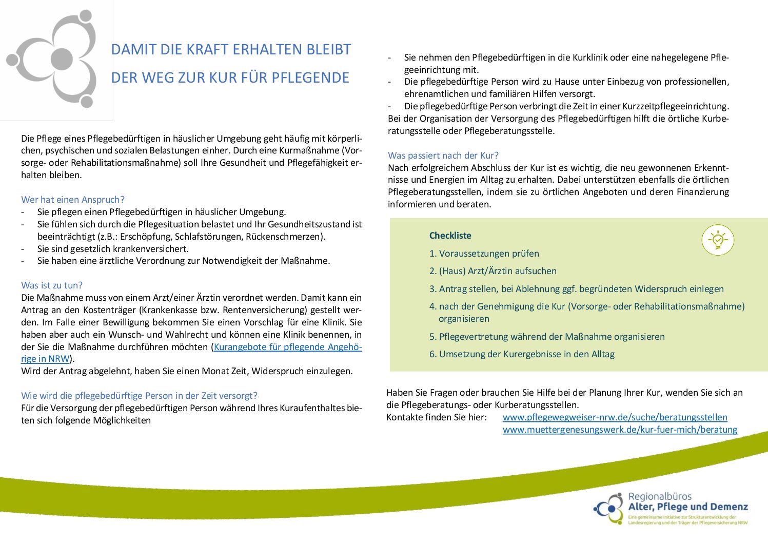 Herausgeber/in: Fach- und Koordinierungsstelle der Regionalbüros Alter, Pflege und Demenz