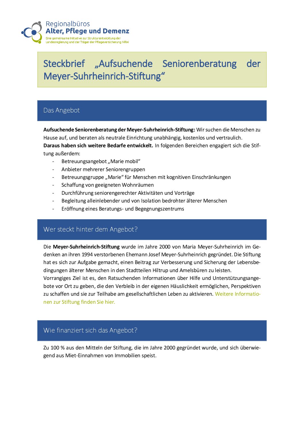 Beispiel guter Praxis: Steckbrief „Aufsuchende Seniorenberatung der Meyer-Suhrheinrich-Stiftung“