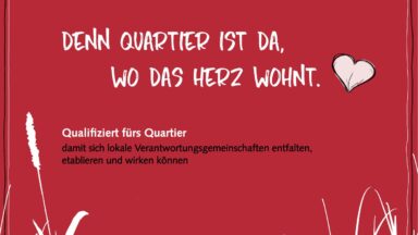 Um die Themen Lebens- und Sozialraumgestaltung sowie inklusive Quartiersentwicklung für den Aufbau und die Zusammenarbeit robuster, partizipativer Netzwerke und nachhaltiger, bereichsübergreifender Hilfe-Mix-Strukturen in lokalen Verantwortungsgemeinschaften geht es in der vom Netzwerk Soziales Neu Gestalten e.V. (SONG) entwickelten und erprobten Qualifizierung „Qualifiziert fürs Quartier“.