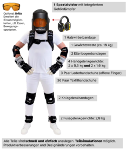Und wie ist das eigentlich allgemein mit dem Altern? Wie fühlt es sich an, in der täglichen Bewegung immer eingeschränkter zu sein oder immer weniger zu sehen und zu hören? Unser Alters-Simulationsanzug macht die Schwierigkeiten des Alterns erlebbar.