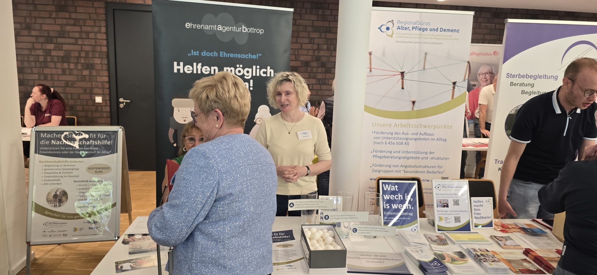 Vor Ort präsentierten sich eine Vielzahl von Einrichtungen aus Bottrop und der Region – darunter Pflegedienste, Senioreneinrichtungen, Krankenhäuser, Hospiz- und Ehrenamtsgruppen, Selbsthilfeorganisationen sowie städtische Beratungsstellen und weitere Unterstützungsangebote. Für das leibliche Wohl war ebenfalls gesorgt, sodass die Besucherinnen und Besucher den Tag in angenehmer Atmosphäre genießen konnten.