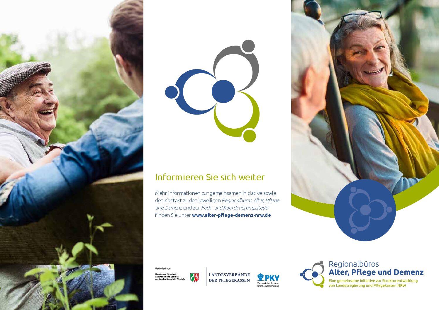 Informationsflyer der Regionalbüros Alter, Pflege und Demenz NRW anlässlich der REHACARE 2019.