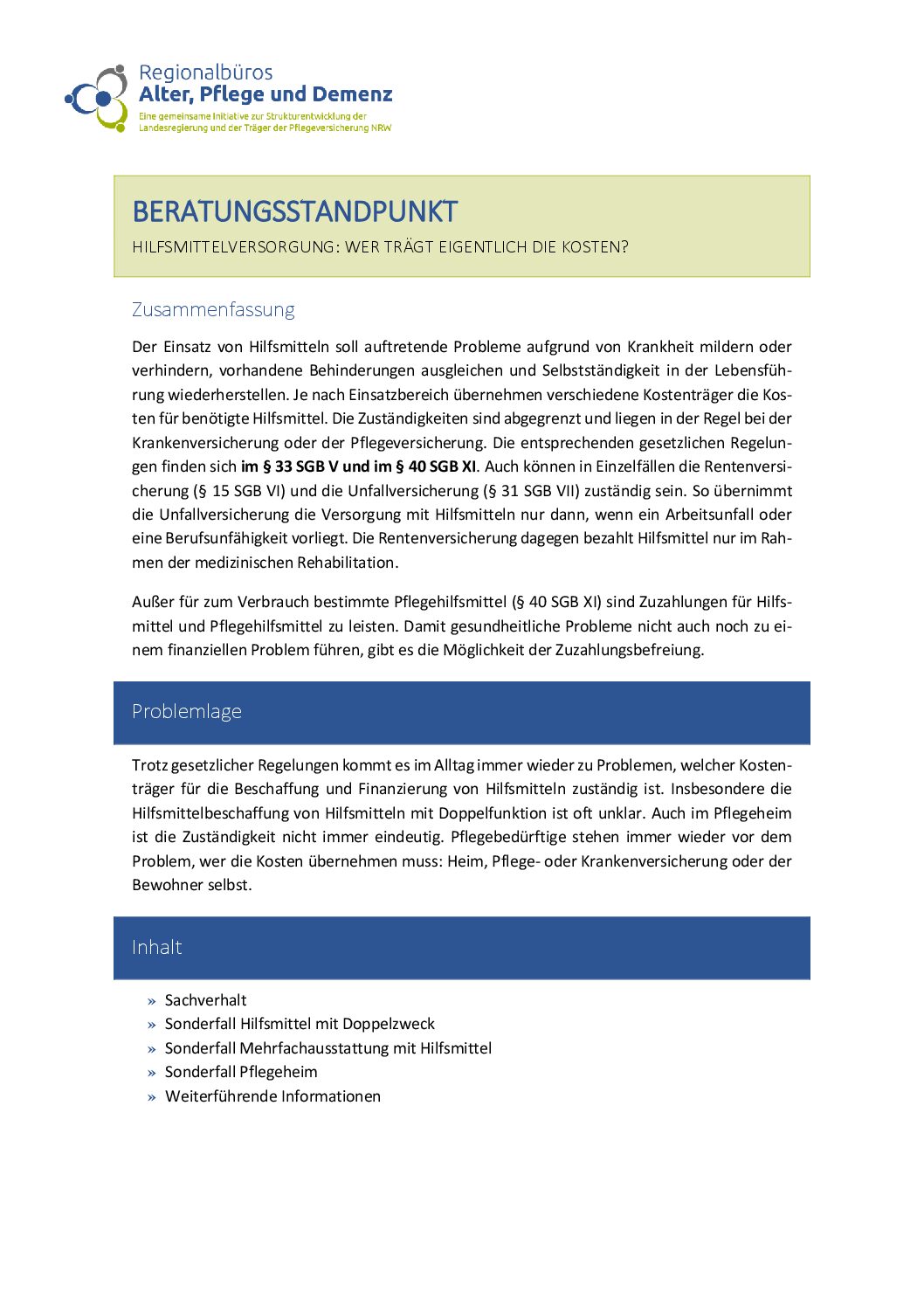 Beratungsstandpunkt zur Hilfsmittelversorgung
