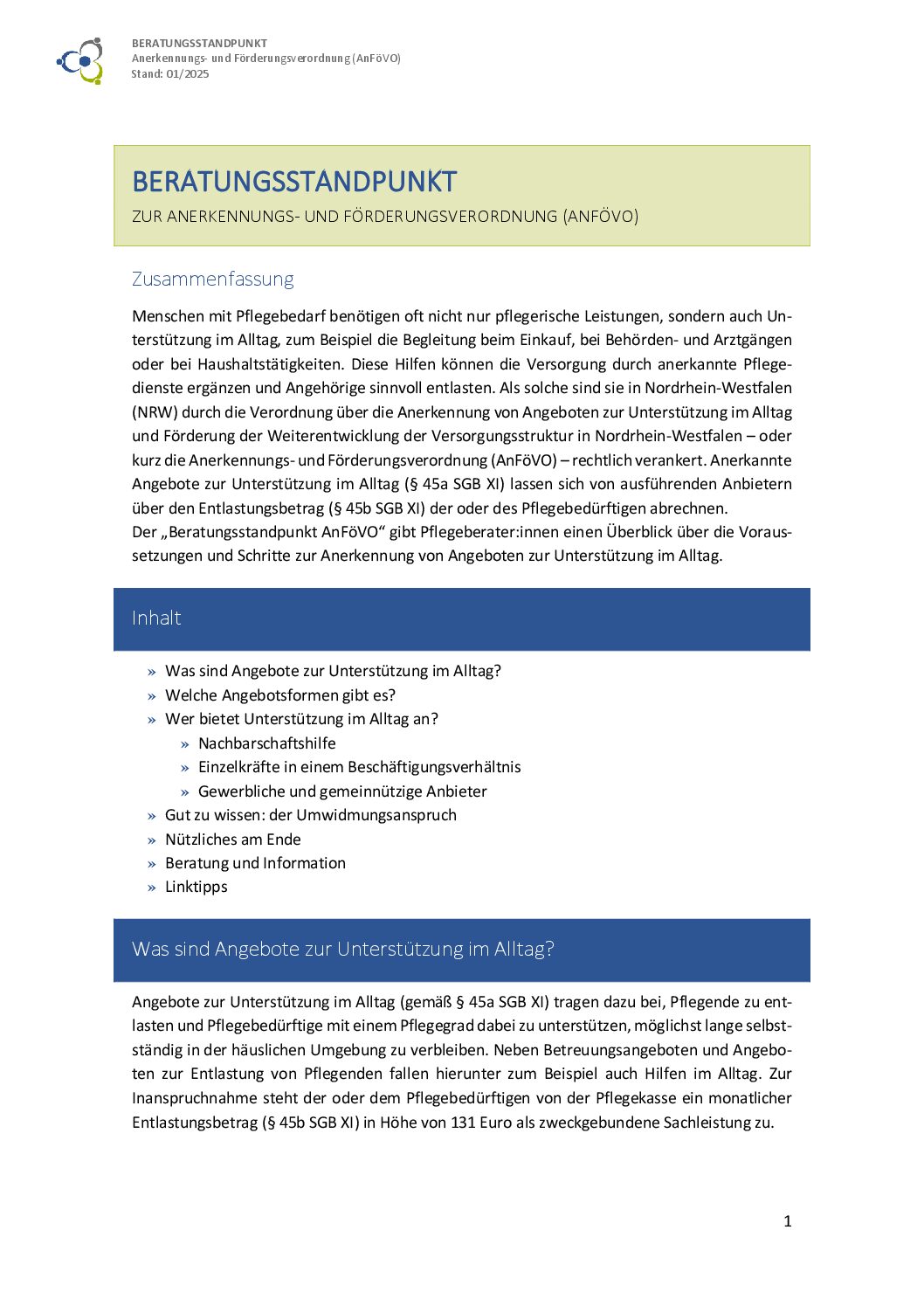 Herausgeber/in: Fach- und Koordinierungsstelle der Regionalbüros Alter, Pflege und Demenz