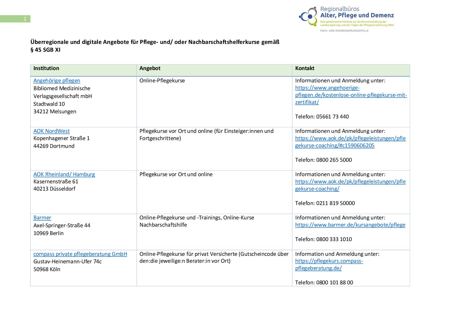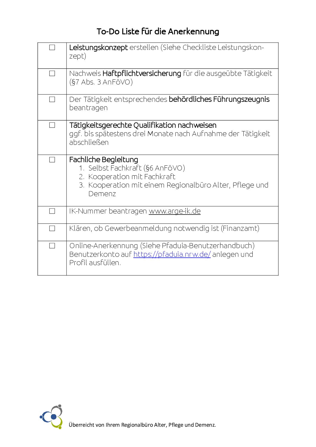 Herausgeber/in: Regionalbüros Alter, Pflege und Demenz