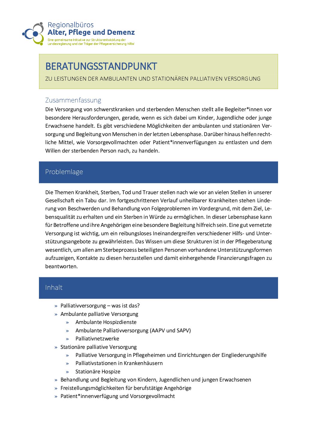 Beratungsstandpunkt zu Leistungen der ambulanten und stationären palliativen Versorgung
