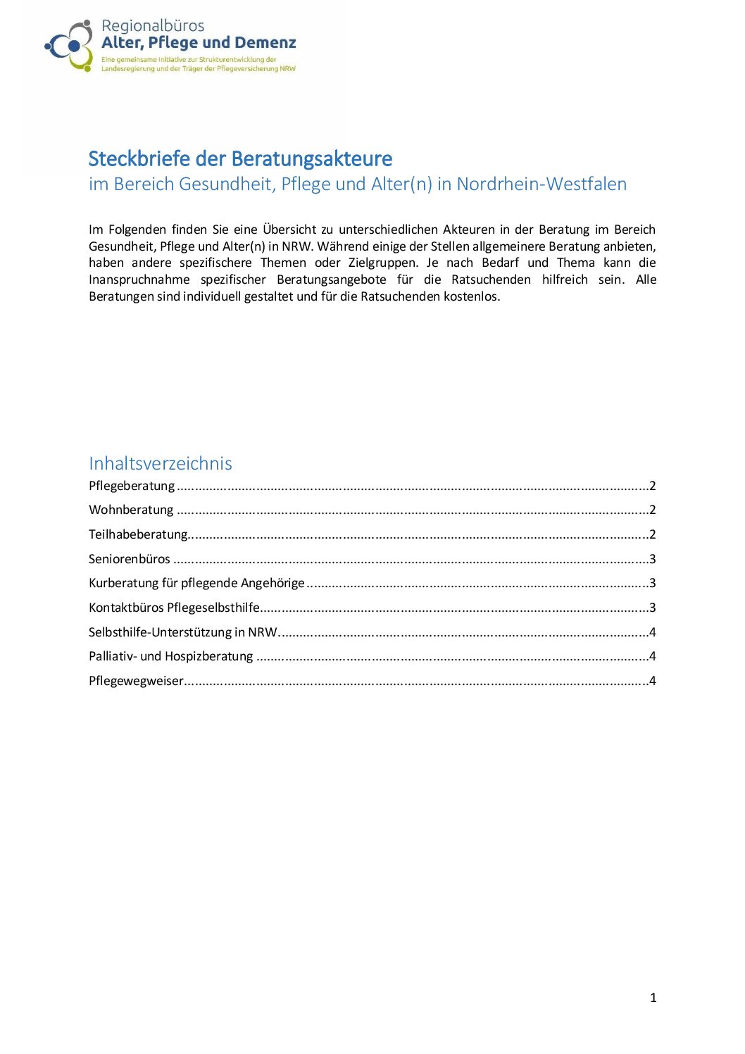 Herausgeber/in: Regionalbüros Alter, Pflege und Demenz