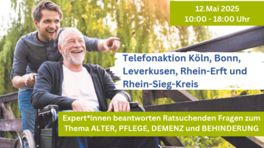 Im Rahmen der Telefonaktion wird am 12.Mai 2025 in den Zeitfenstern von 10:00-18:00 Uhr die folgenden Telefonnummern zur Verfügung gestellt 02203- 3589510 und 02203- 3589511, die zunächst alle Anrufe entgegennehmen und dann an die entsprechenden Expert*innen zu den verschiedenen Fragestellungen verweist. Zusätzlich wird die Telefonnummer 0221-4203980 für Menschen mit wenigen oder keinen Deutschkenntnissen zur Verfügung stehen.
