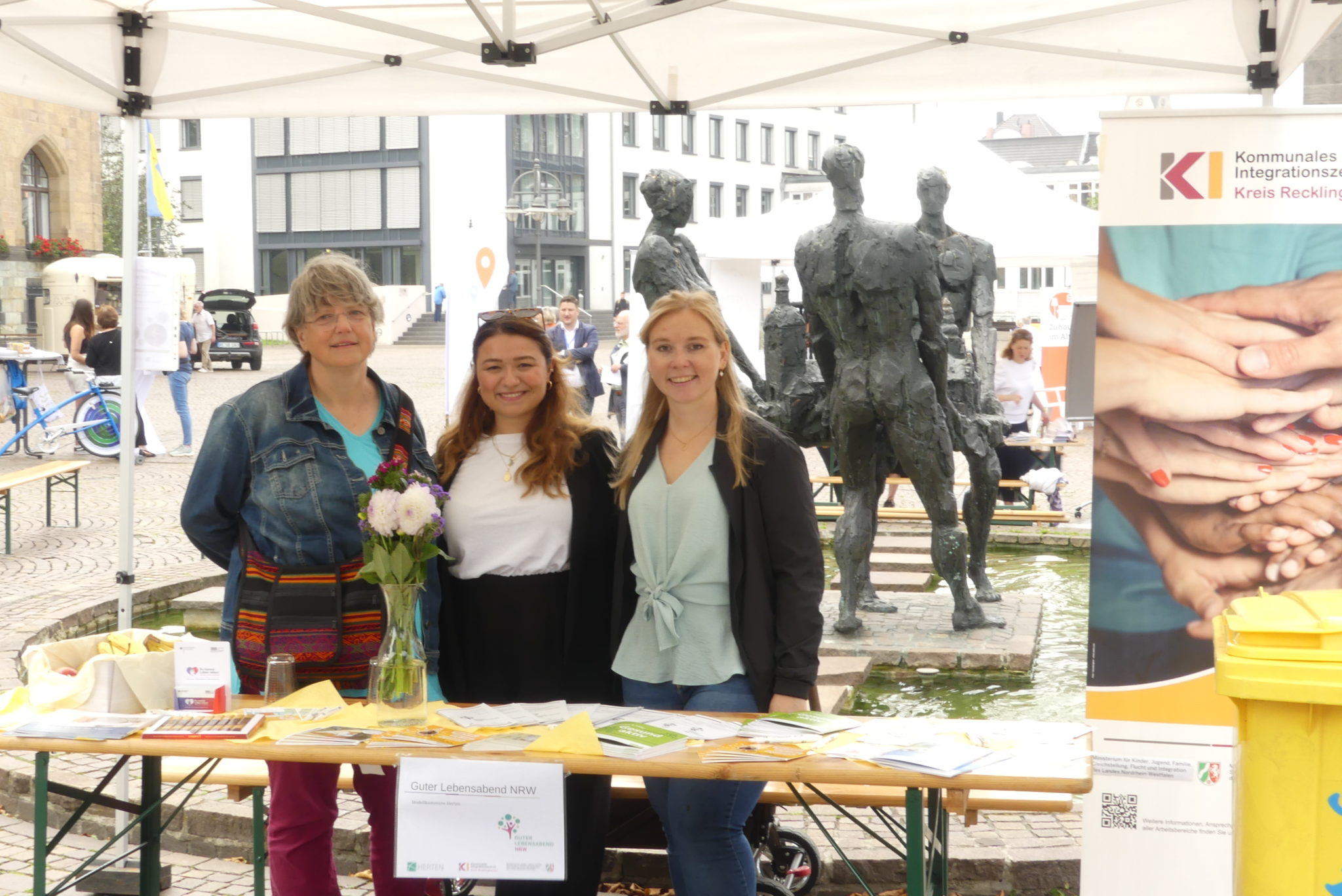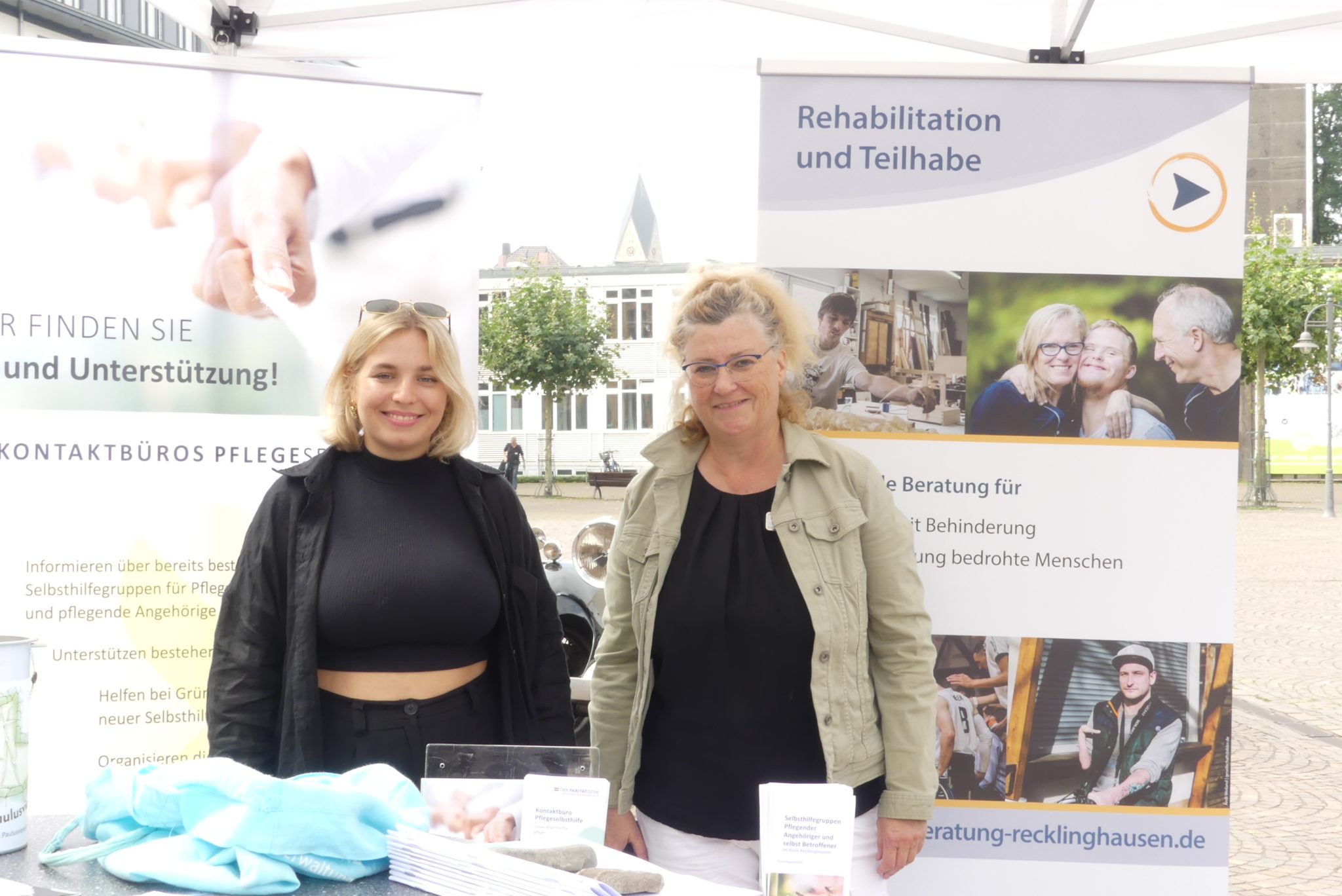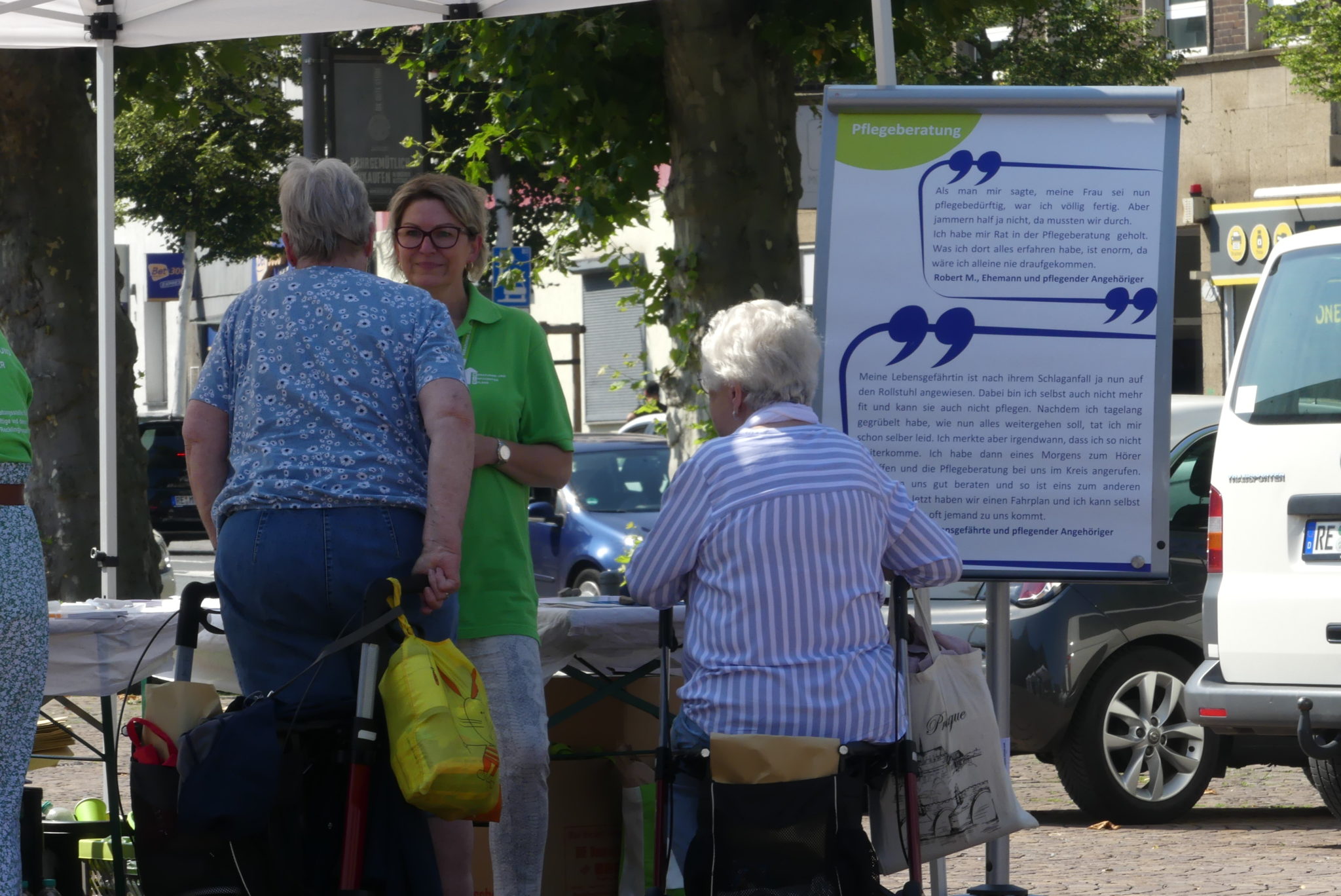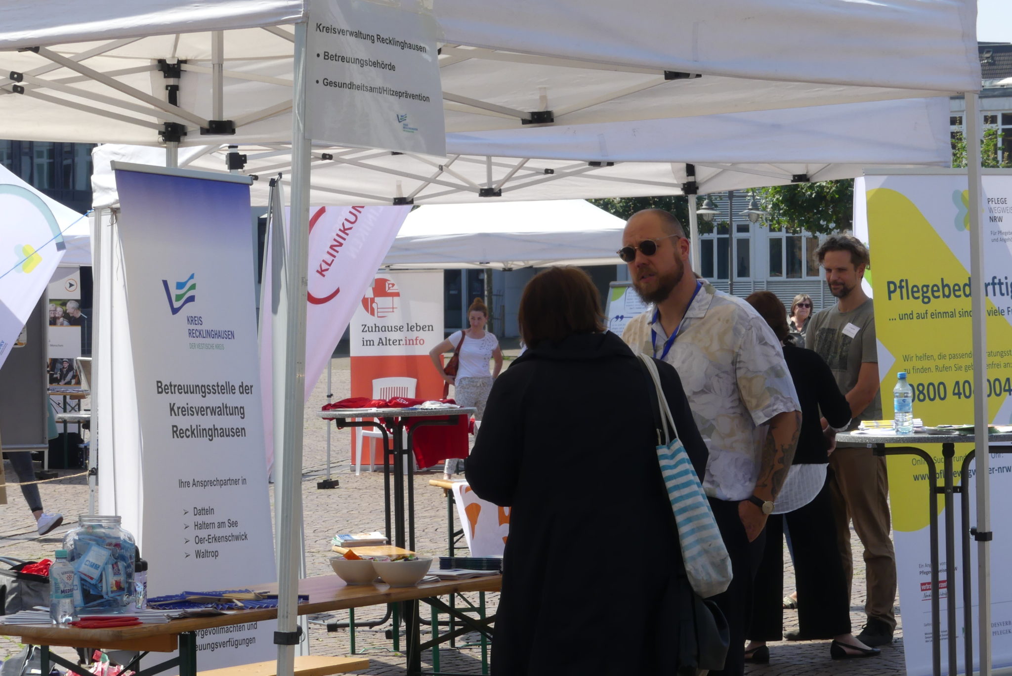 Die Pflege und Betreuung eines Angehörigen ist meist mit großen Herausforderungen und Veränderungen im Alltag der Pflegenden verbunden. Vieles ist zu organisieren und zu bedenken. Wer kann in dieser Situation Hilfe und Entlastung im Kreis Recklinghausen bieten? Dazu haben die Beratungs- und Infocenter Pflege mit dem Regionalbüro Alter, Pflege und Demenz Ruhr am 18. August eine Infomesse auf dem Rathausplatz in Recklinghausen veranstaltet. In diesem Rahmen fand auch der Auftakt der landesweiten Pflege-Rat-Tour NRW statt.