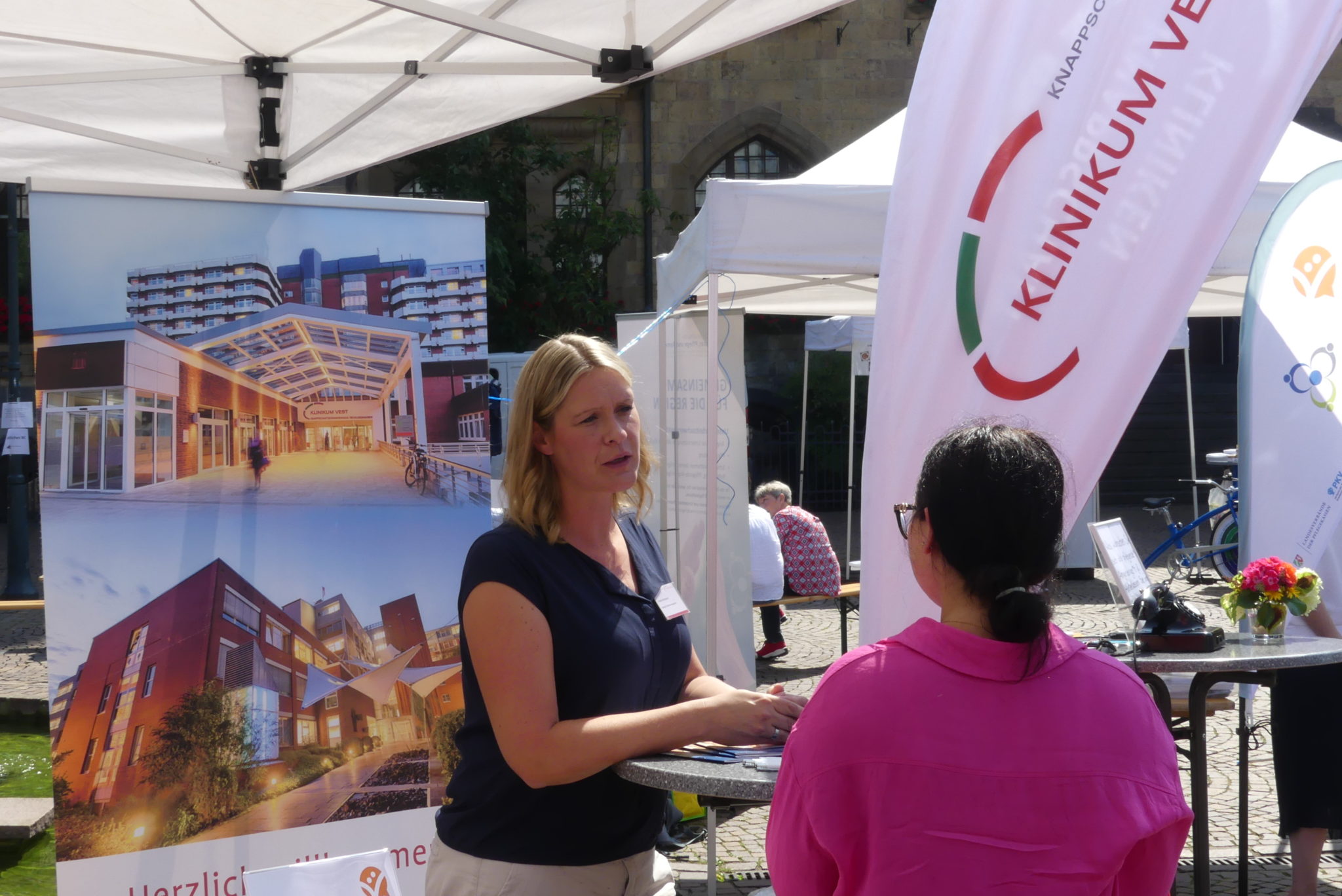 Das Kontaktbüro Pflegeselbsthilfe war auch vertreten, ebenso wie die Betreuungsbehörde, das kommunale Integrationszentrum (Projekt Guter Lebensabend NRW) und das Landesprogramm Vereinbarkeit Beruf und Pflege. Hier war auch das Knappschaftsklinikum vor Ort, die sich für Vereinbarkeit von Beruf und Pflege in ihrem Unternehmen stark engagieren.