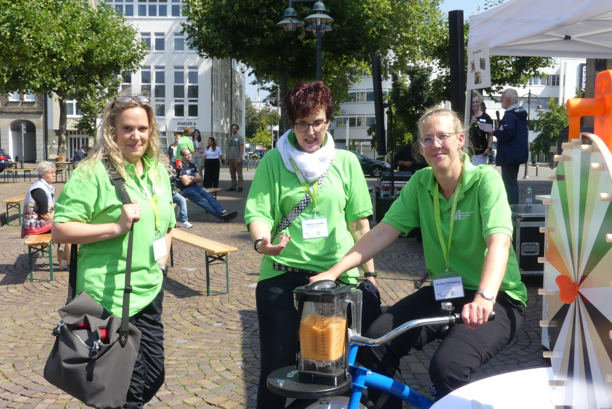 Daneben sorgten ein Glücksrad, die Spieltonne des Projektes Guter Lebensabend NRW und ein Grußtelefon für Abwechslung. Das Smoothiebike der Pflege-Rat-Tour sorgte für fruchtig-frischen Genuss bei Hochsommertemperaturen.