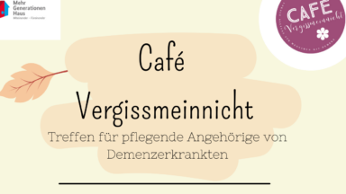 - Café Vergissmeinnicht 2.0- Treffen für junge Angehörige von Demenzerkrankten: jeder 3. Montag im Monat, 17-18 Uhr, unter der Leitung von Charlotte Zweihof