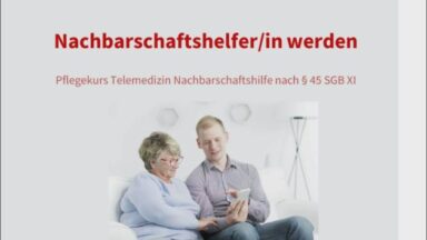 Für die Tätigkeit als Nachbarschaftshelfer:in muss ein anerkannter Pflegekurs erfolgreich abgeschlossen werden. Das Telemedizin Zentrum Hamm bietet einen solchen Nachbarschaftshilfe-Kurs in digitaler Form an. Die notwendigen Kenntnisse erhalten die Nachbarschaftshelfer:innen, wenn sie den kostenlosen Pflegekurs Telemedizin absolvieren. Nach erfolgreicher Partizipation an dem Pflegekurs erhalten die Teilnehmenden ein aussagekräftiges Zertifikat.